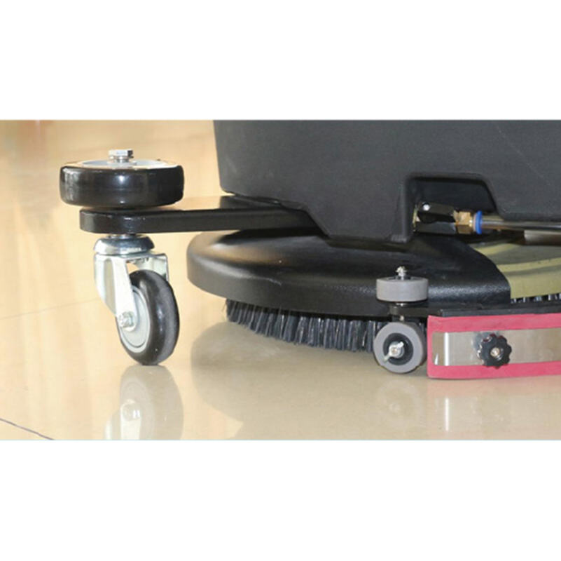 Equipped with a good motor, this auto scrubber achieves 95% water recovery, so floors dry fast to avoid slipping. The durable rubber strip maintains tight contact with uneven surfaces, ensuring perfect water suction. And the anti-collision wheels protect the scrubber from hitting the walls, achieves longer span life. The water regulating valve allows you to adjust flow based on floor dirt level.